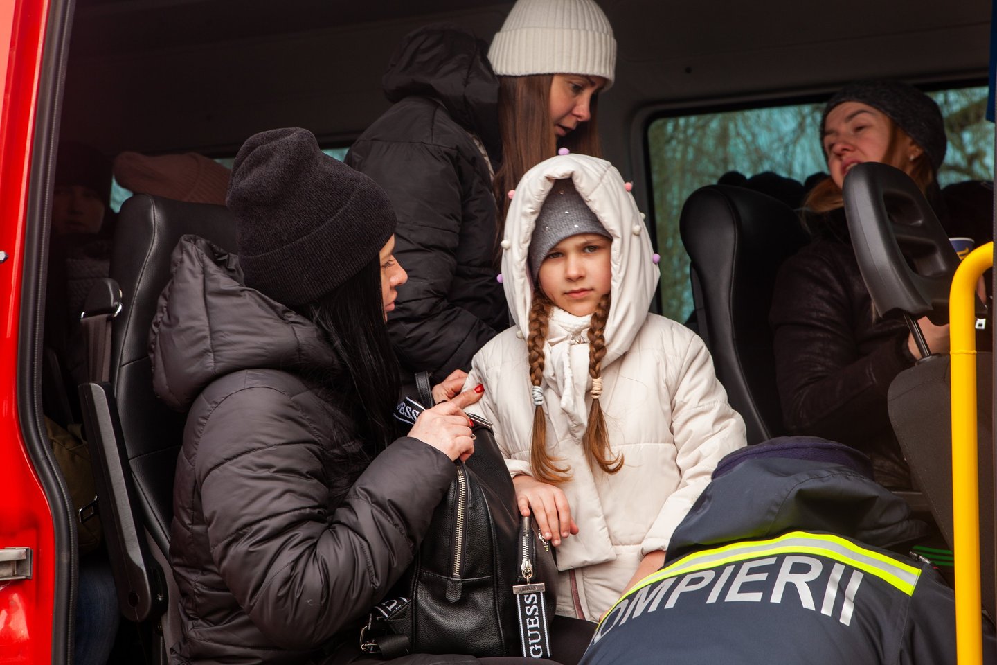 Two Ukrainian girls resting on a train from Romania to Germany